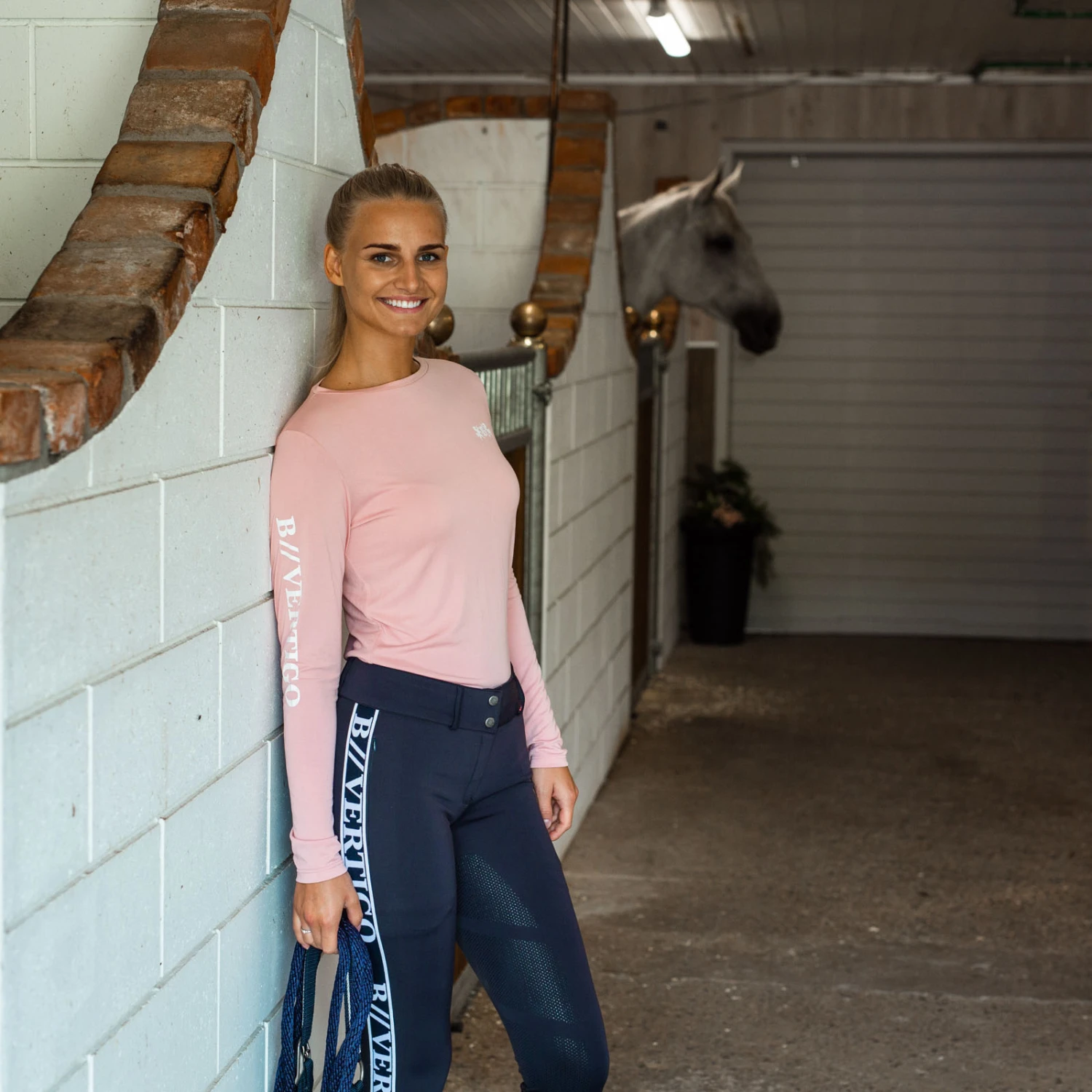 Das B Vertigo Daniele Langarmshirt besteht aus super weichem, atmungsaktivem Stoff, der sich toll auf der Haut anfühlt und perfekt für dein tägliches Training geeignet ist. Das Shirt hält dich kühl und trocken. Ein dezenter sportlicher Logoprint auf dem Ärmel sorgt für einen klaren Look. Trage es beim Reiten, im Stall oder in deiner Freizeit.