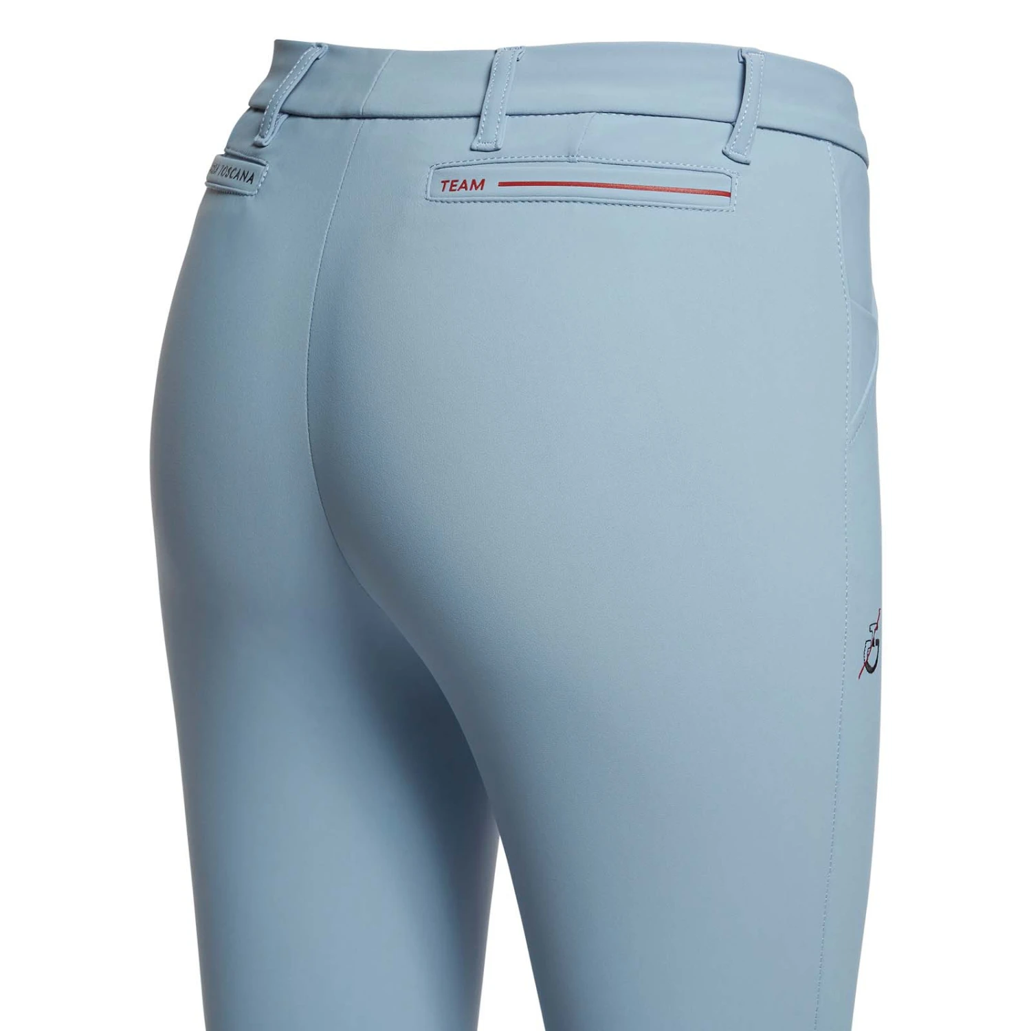 Die Reithose für Damen ist aus 4-Wege-Stretch-Jersey gefertigt. Das technische Material bietet hohe Atmungsaktivität und Bewegungsfreiheit: Der Stoff schmiegt sich perfekt an deinen Körper an, ohne einzuengen. Der transparente Kniebesatz sorgt für die richtige Stabilität auf dem Pferd, während die elastischen Beinabschlüsse den Sitz unter deinen Stiefeln verbessern. Sie verfügt über zwei Fronttaschen und einen Reißverschluss mit Boden. CT Team-Personalisierung.