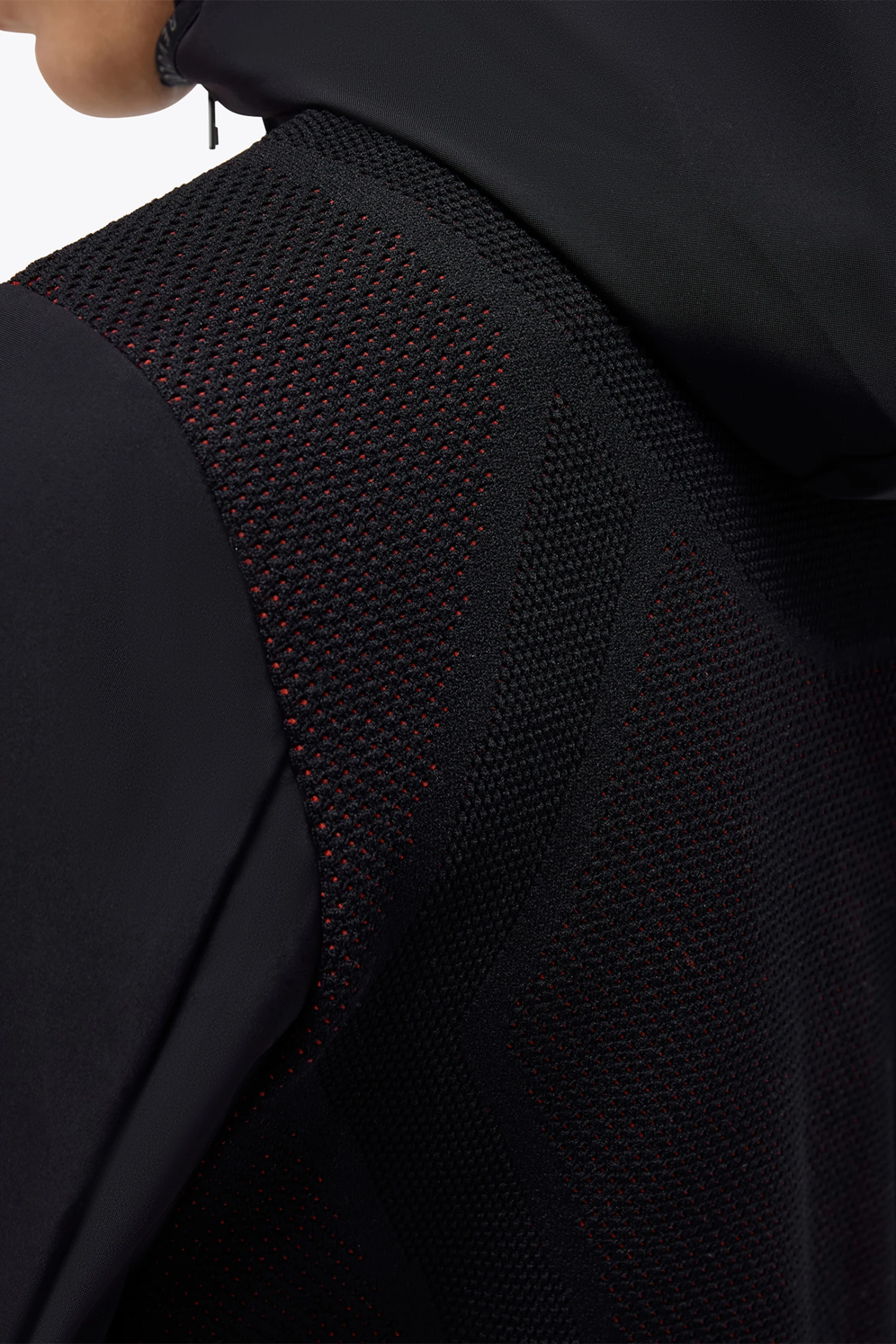 Eine technische, leistungsstarke Jacke, die für Outdoor-Aktivitäten und zum Reiten entwickelt wurde. Das Modell ist aus REVO Softshell gefertigt und verfügt über eine atmungsaktive, wasser- und winddichte Innenmembran mit einem technischen Strickrücken. Die langen Ärmel mit Daumenlöchern schützen die Hände, während der Kragen, die Taschen, die seitlichen Belüftungsöffnungen und der Verschluss mit wärmeversiegelten Reißverschlüssen für zusätzliche Isolierung ausgestattet sind. Die Logoeinfassung und der Schriftzug auf der Vorderseite sorgen für ein starkes grafisches Finish.