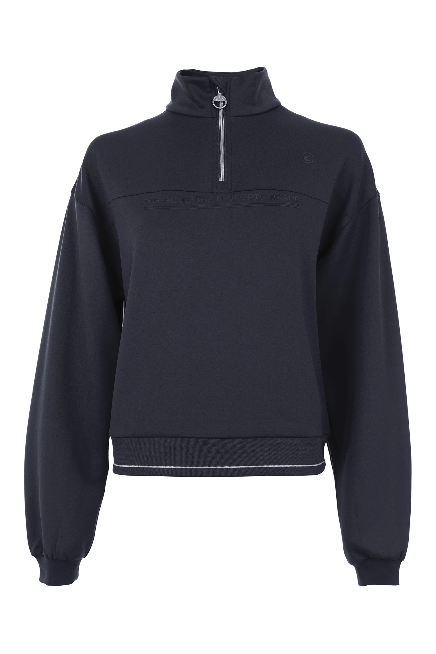 Mit Reißverschluss im Stehkragen. Reißverschluss mit Cavallo Schmuckanhänger mit Kristall. Rippbündchen mit Kontraststreifen am Saum. Erhabenes Cavallo Flaglabel in linker Seitennaht. Tonales, leicht erhabenes Cavallo Artwork unterhalb der Passe im VT sowie auf der linken Brust. Weiteres, tonales und leicht erhabenes Cavallo Artwork oberhalb des Saums auf dem RT.