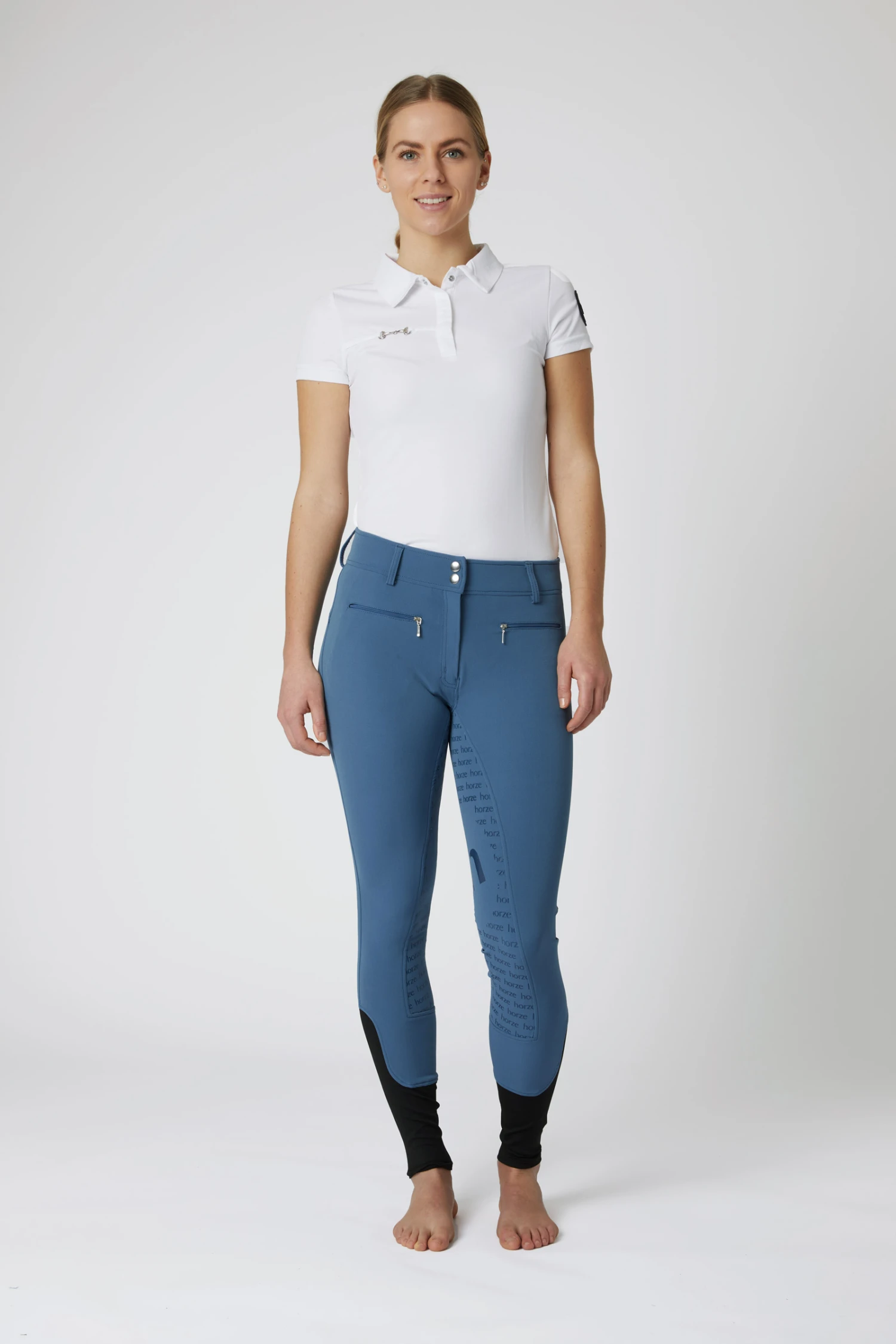 Ein schöner hoher Bund mit kreuzförmiger Gürtelschlaufe macht diese Damenreithose zu einer guten Wahl für bequemes und stilvolles Training. Der Silikonbesatz in einem fröhlichen Muster sorgt für zusätzlichen Halt, wo du ihn am meisten brauchst. Zwei Reißverschlusstaschen vorne bieten Platz für Schlüssel oder Leckereien, und der elastische Unterschenkel bietet Komfort unter Winterstiefeln. Wähle aus kräftigen, satten Farben.