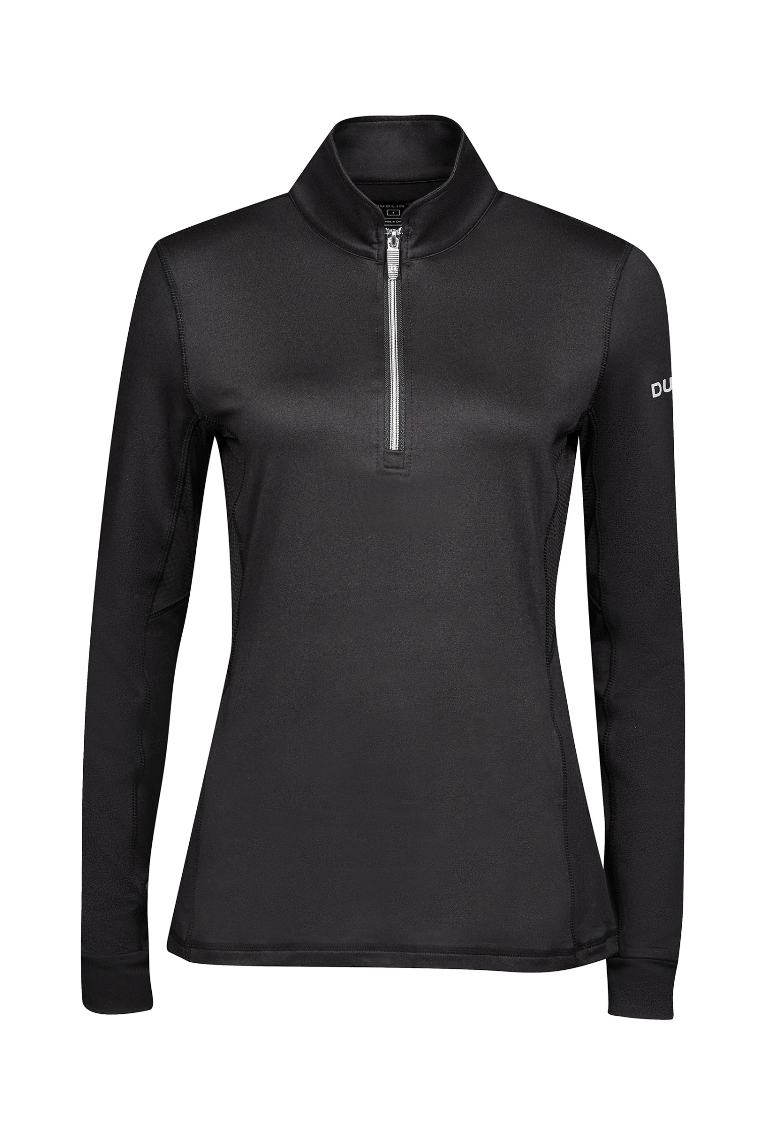 Das Dublin Kylee Long Sleeve Shirt II ist ein großartiges, atmungsaktives und vielseitiges Langarmshirt aus Bi-Stretch-Jersey mit Lichtschutzfaktor 50+ und einem gepeachten Außenmaterial. Die Comfort Dry Technologie sorgt bei jedem Wetter für eine optimale Feuchtigkeitsregulierung und ganztägigen Tragekomfort. Mesh-Einsätze an den Seiten und Mesh unter den Ärmeln sorgen für Belüftung und eine Rückenpasse mit Falten ermöglicht zusätzliche Bewegungsfreiheit. Das gepeachte Außenmaterial des Dublin Kylee Shirts lässt Schmutz, Heu und Pferdehaare abperlen, damit du immer gut aussiehst. Ein Stehkragen mit halber Reißverschlussleiste sorgt für eine bequeme Passform. Der silberne, reflektierende Dublin-Schriftzug erhöht die Sichtbarkeit.