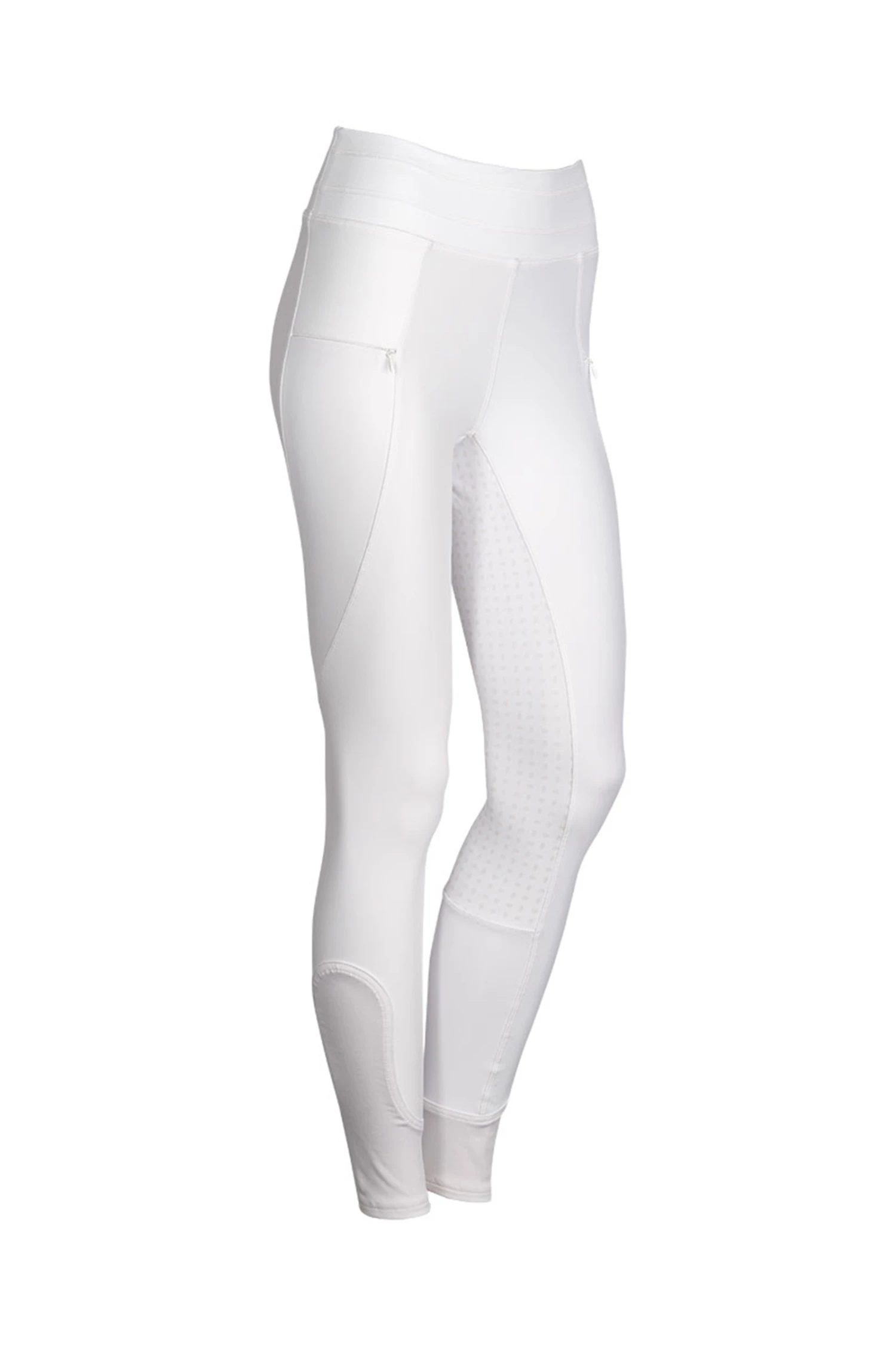 Der neueste Trend – Reitleggings. Sehr bequemer und dehnbarer Stoff, Pull-Up-Modell (ohne Vorderverschluss), zwei Taschen mit Reißverschluss, rundgenähte Gesäßpartie mit Silikon für zusätzlichen Halt im Sattel, Flex-Beinabschlüsse.