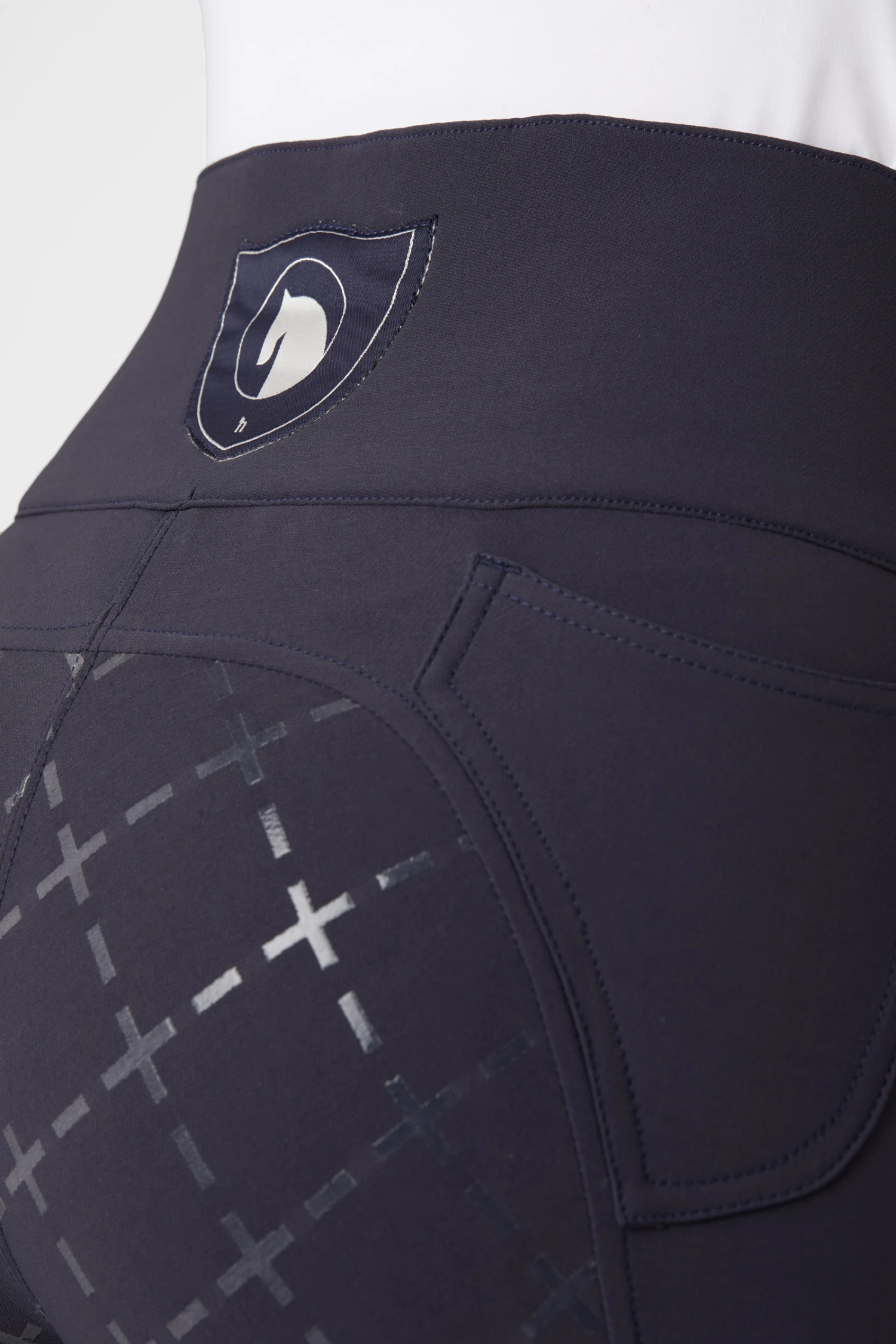 - Modische Damenreithose mit einem speziellen Karo-Druck aus Silikon auf dem Vollbesatz, der für einen guten Halt im Sattel sorgt