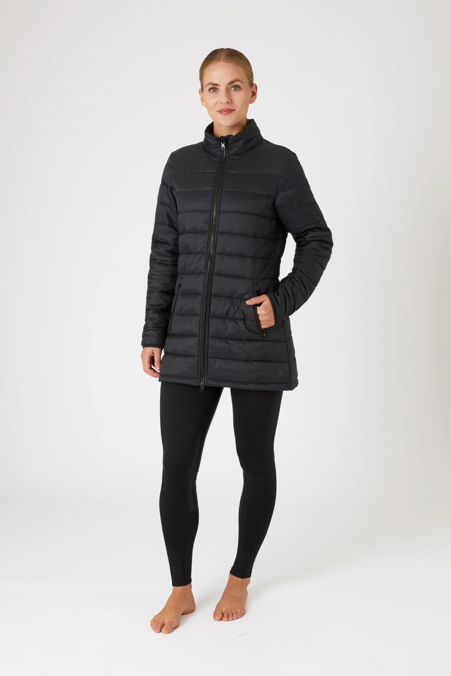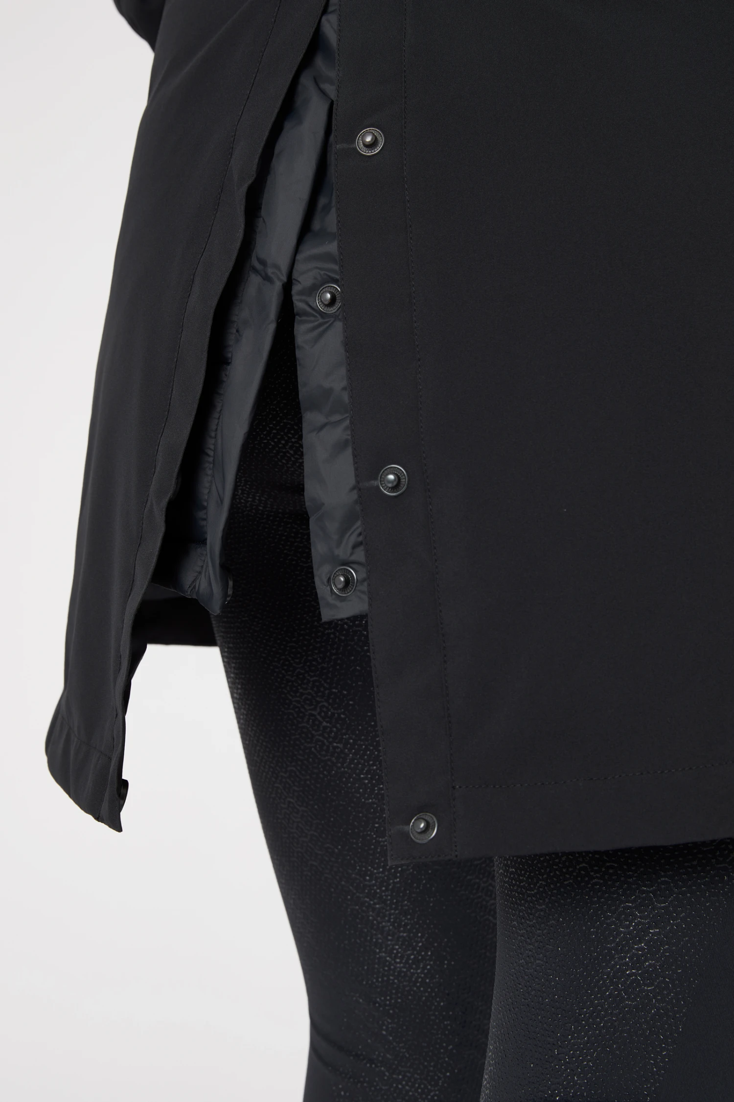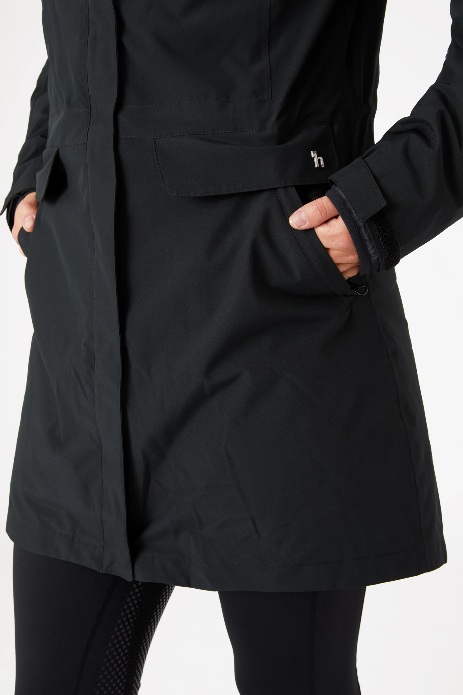 Unsere Horze Isabella Parka Jacke ist aus innerer und äußerer Jacke konzipiert. An Tagen, an denen du eine Regenjacke oder eine gefütterte Jacke brauchst, kann jede Jacke separat getragen werden. Zusammen ergeben sie einen warmen, wasserabweisenden Parka. Die Kapuze ist abnehmbar und du kannst die Taille für deine perfekte Passform einstellen. Zwei Reißverschlusstaschen bewahren deine Habseligkeiten sicher auf. Der Rückenschlitz mit Druckknöpfen ist beim Reiten bequem und funktionell. Die Innenjacke wird mit kleinen Schlaufen und Druckknöpfen im Nacken, an den Ärmelbündchen und mit den Reißverschlüssen an der Vorderseite an der Außenjacke befestigt.