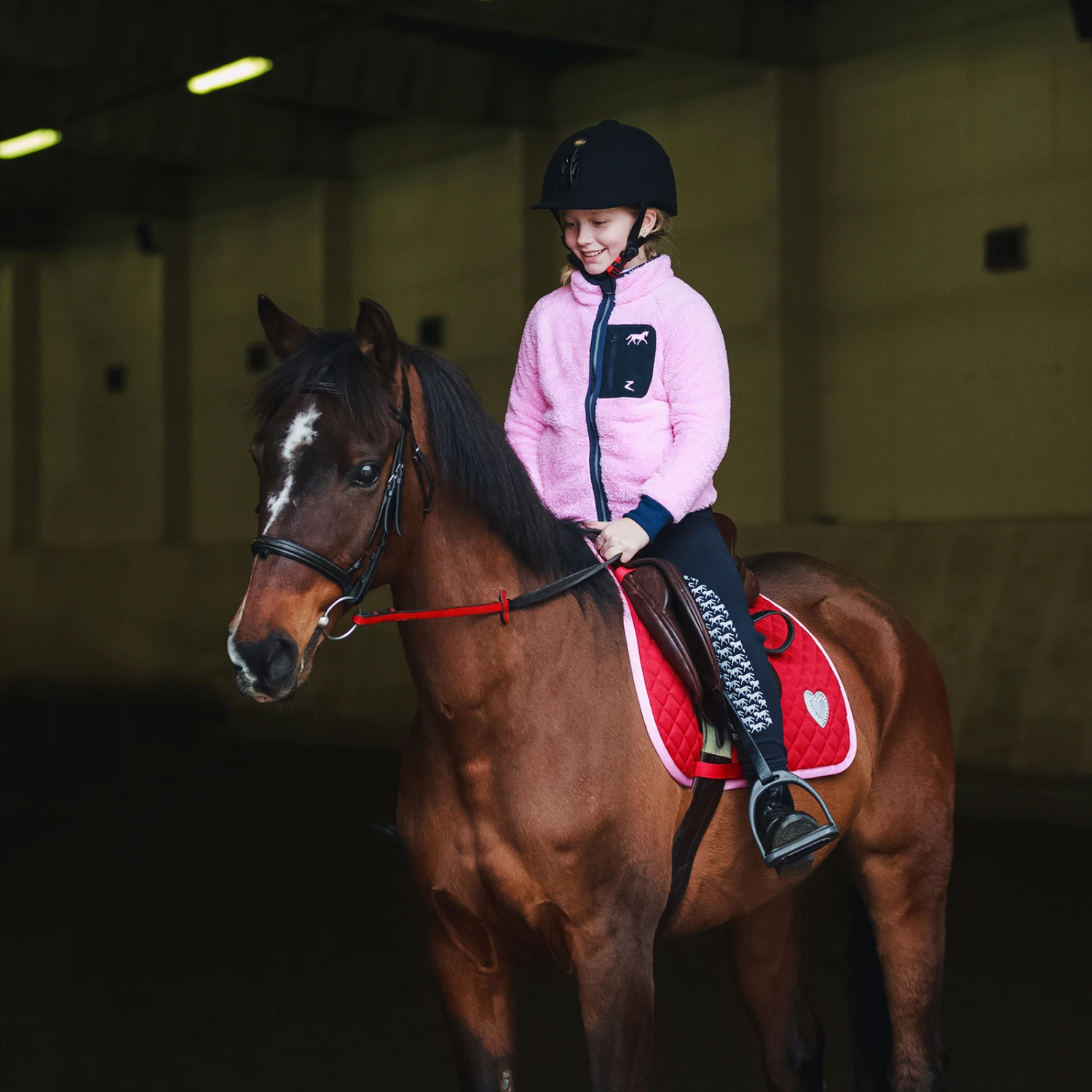 Kinder bleiben mit der Horze Landry Kids Fleecejacke im Stall angenehm warm. Diese kuschelige Jacke mit dem Aufdruck eines trabenden Ponys auf der Brust und elastischen Bündchen und Kragen hält die Kälte des Winterwindes fern. Die seitlichen Reißverschlusstaschen und die zusätzliche Brusttasche bieten viel Platz, um kleine Schätze zu verstauen. Die praktische Jacke ist atmungsaktiv und wird schnell zur Lieblingsjacke im Winter.