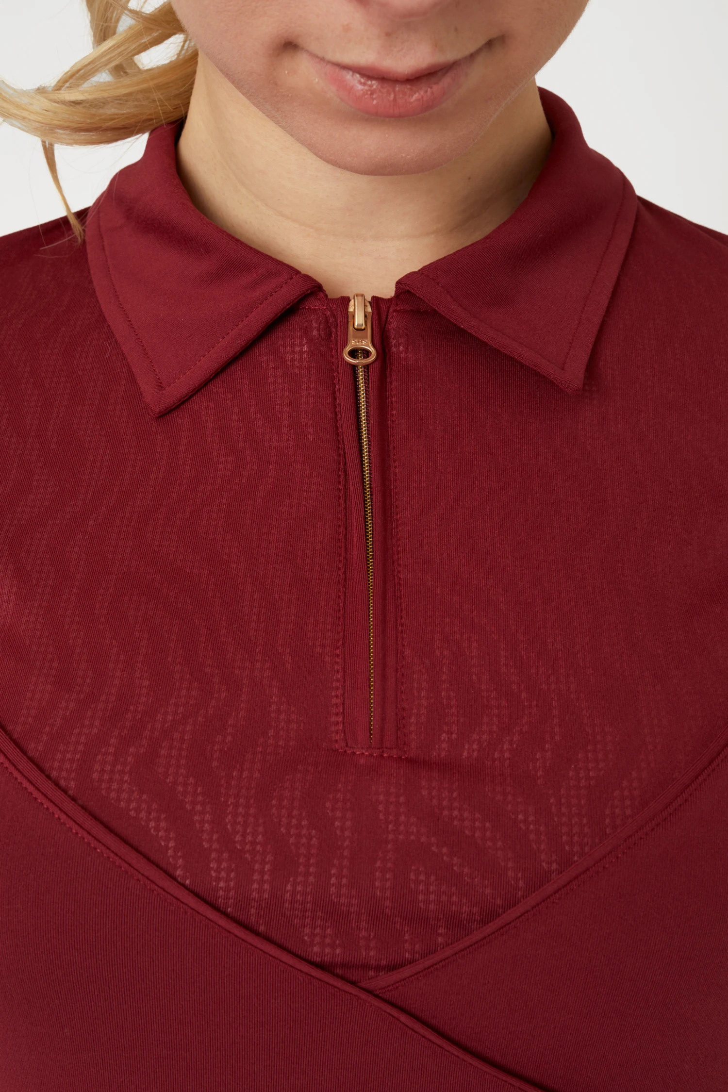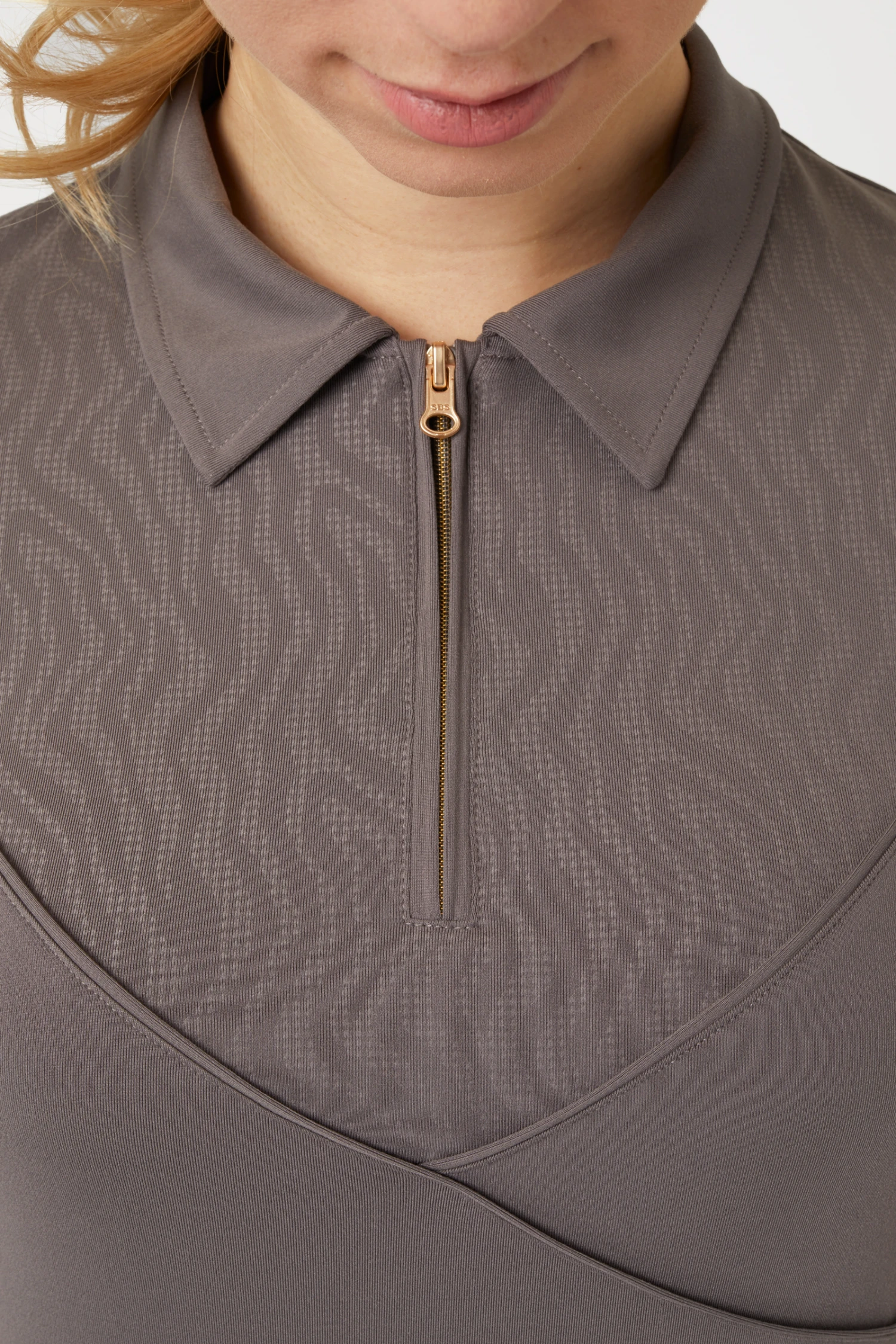 Dieses zeitlose Polo wird durch den Allover-Heatprint auf der Rückseite und der oberen Vorderseite aufgepeppt. Der Thermodruck zeigt ein Safarimuster, das zum Rest der Kollektion passt. Die Paspel auf der Vorderseite über der Brust sorgt für eine schmeichelhafte Figur. Der halbe Reißverschluss sorgt für einen sportlichen Stil und erleichtert das An- und Ausziehen.