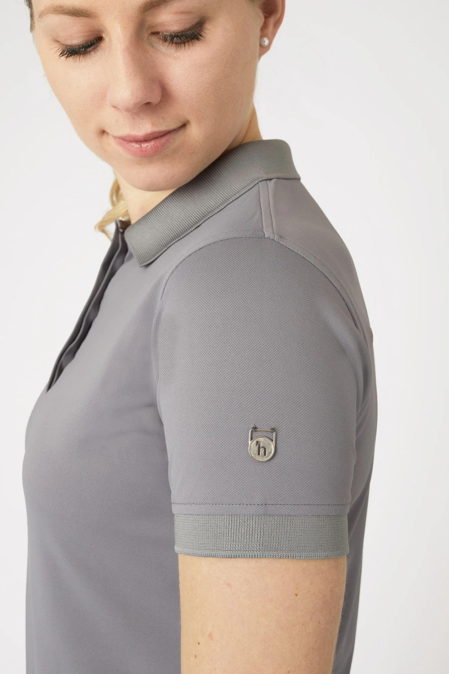 Dank des atmungsaktiven, feuchtigkeitstransportierenden Gewebes hält dich dieses klassische Damen-Polo auch an wärmeren Tagen angenehm kühl. Außerdem ist das Shirt antibakteriell und bietet UV-Schutz, was es zur perfekten Wahl für schweißtreibende Ritte an heißen Sommertagen macht. Die Vorderseite lässt sich mit einer Reihe versteckter Kunststoffknöpfe öffnen, die ein einfaches An- und Ausziehen ermöglichen, ohne den Style zu stören.
