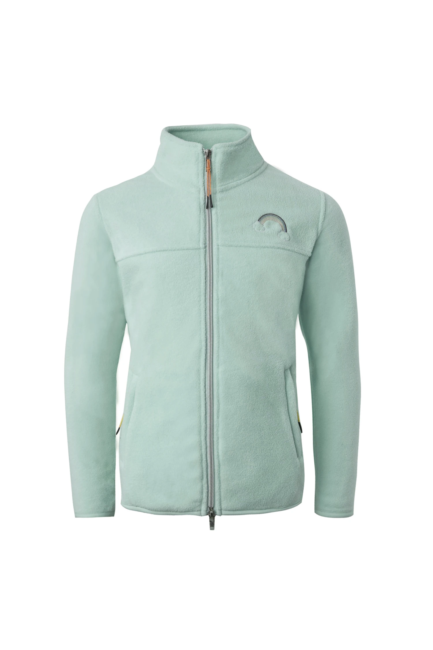 Superweiche Fleecejacke in Pastellfarben mit Regenbogenstickerei auf der Brust und Logostickerei auf dem linken Ärmel. Praktischer Zwei-Wege-Reißverschluss und Reißverschlusstaschen, um deine Sachen sicher aufzubewahren. Elastische Bündchen an den Ärmeln und am Saum sorgen für einen festen Sitz.