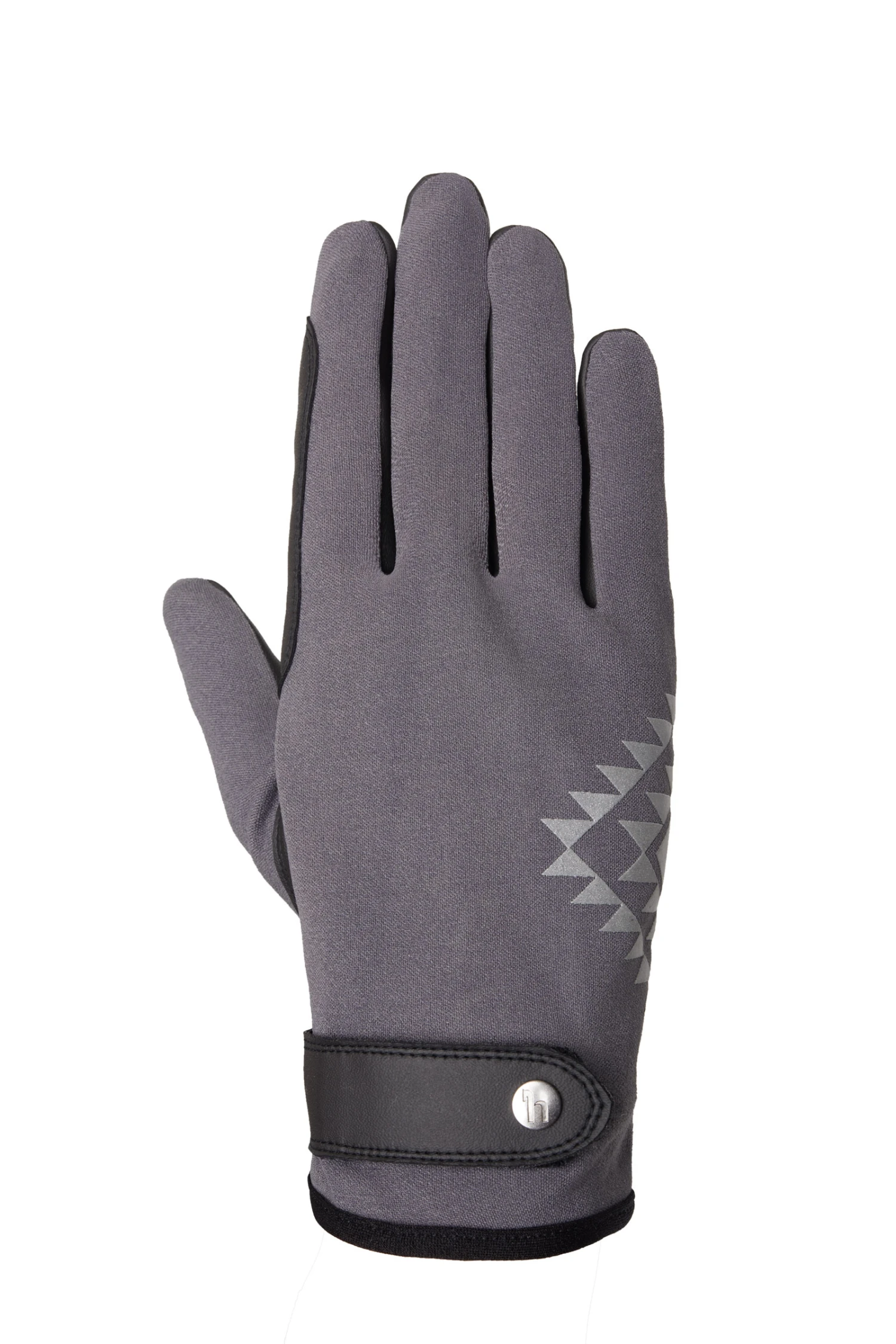 Mit seinem leichten, elastischen Material ist er der perfekte Sommerhandschuh. Der verstellbare Klettverschluss sorgt für eine optimale Passform. Serino-Gewebe auf der Handfläche für einen guten Halt der Zügel, mit zusätzlichen Verstärkungen, wo die Zügel verlaufen. Azteken-Druck auf der Oberhand.
