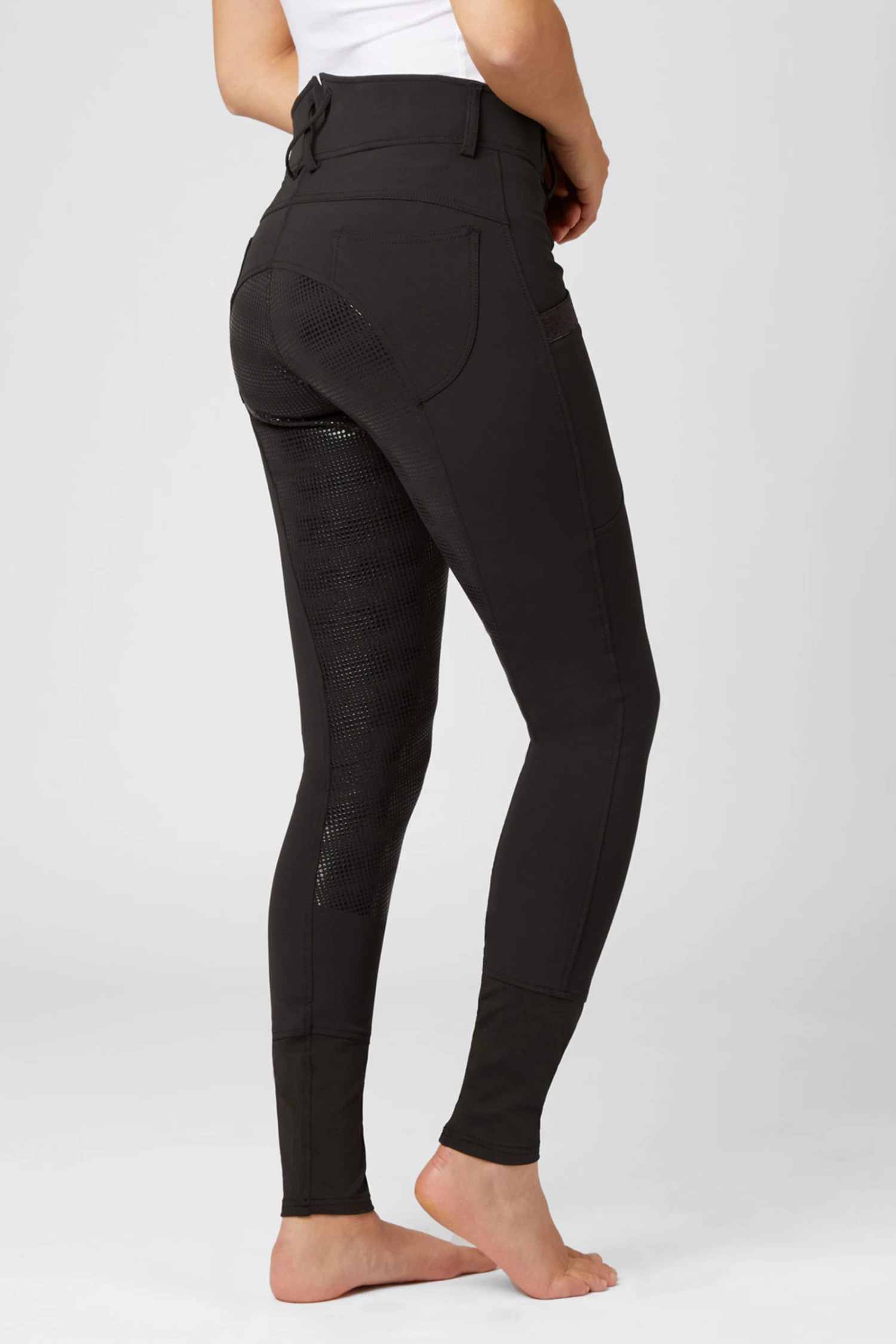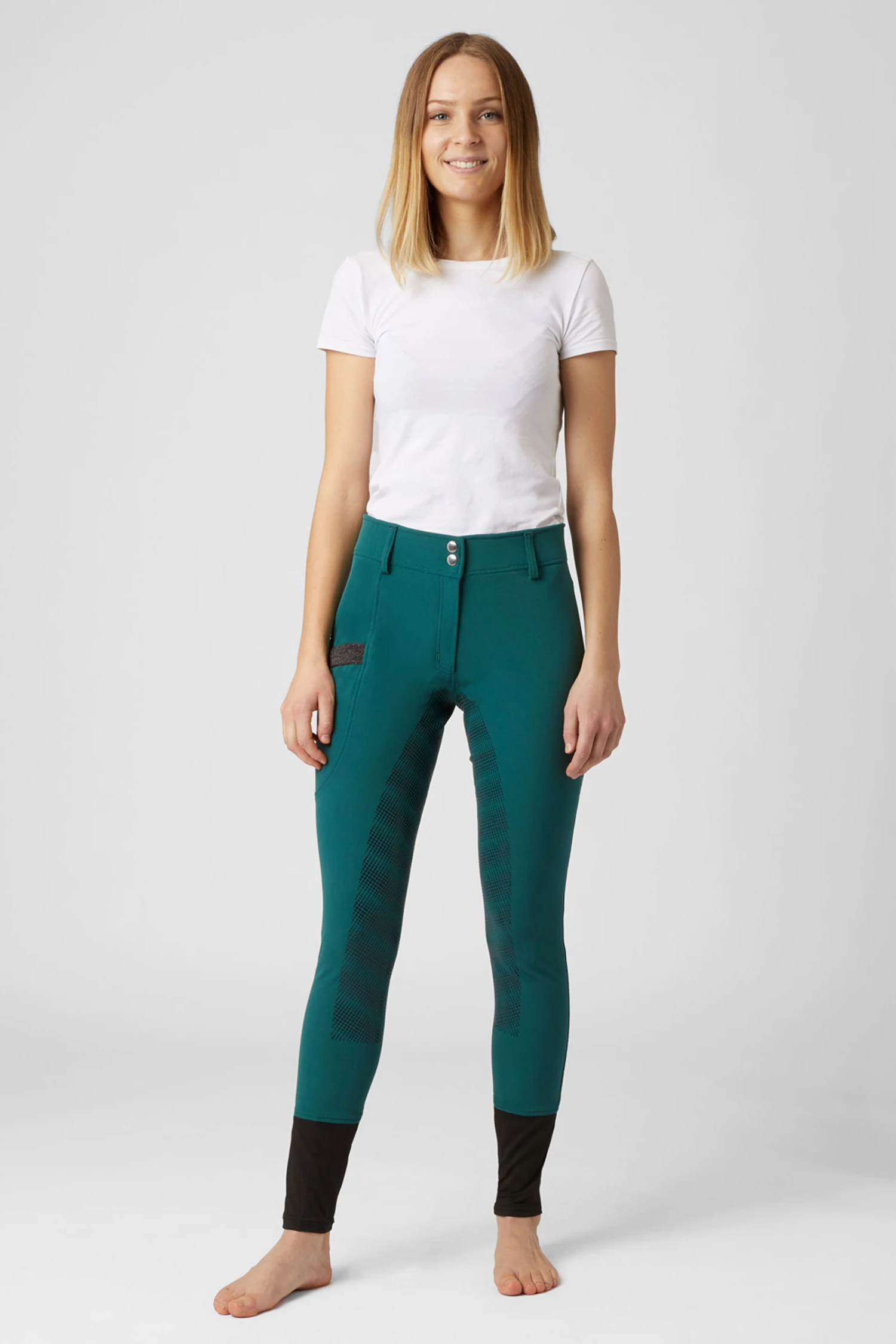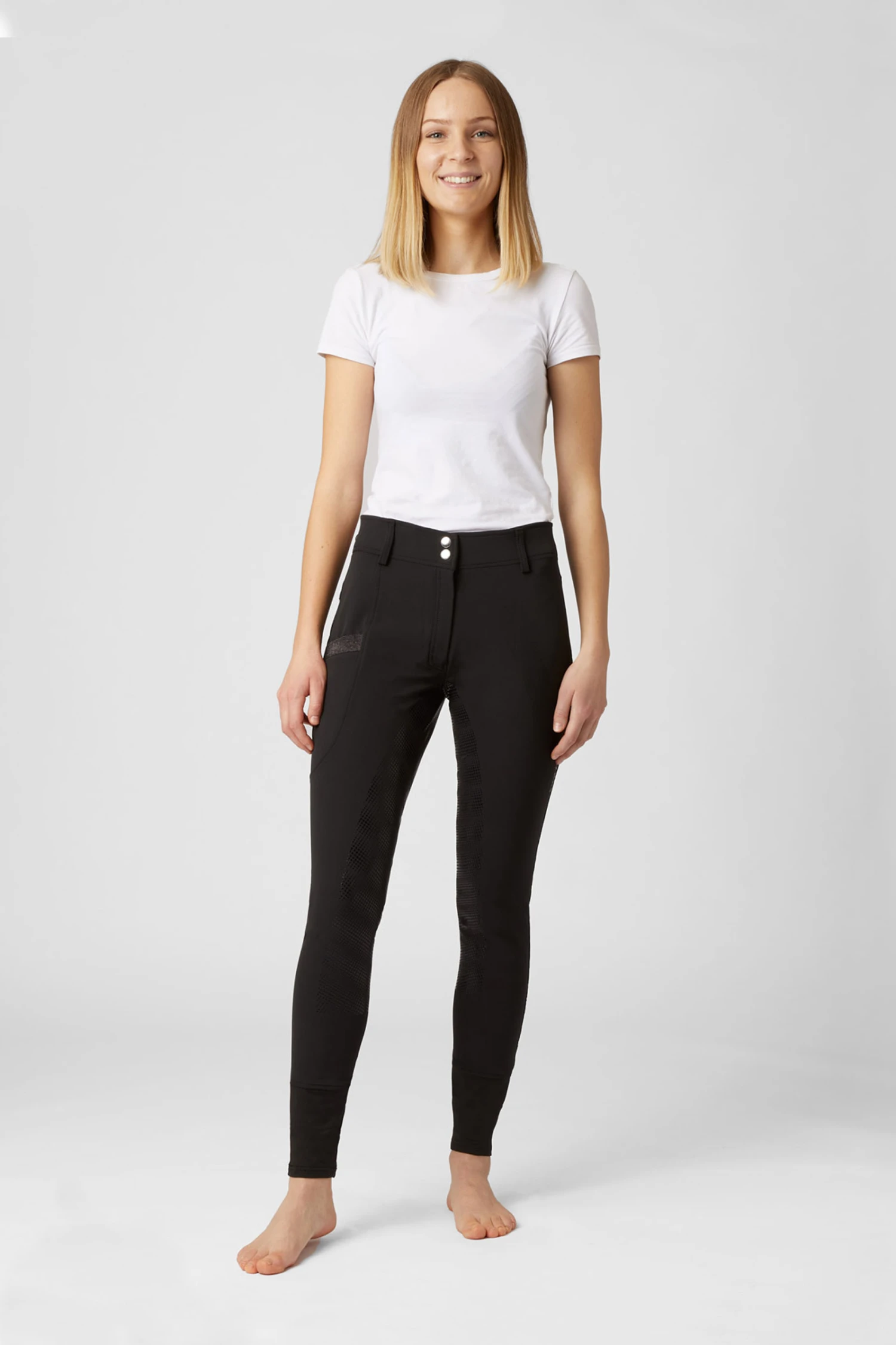 Diese Vollbesatzreithose in hübschen Farben ist mit einem hohen Bund ausgestattet, der sie an ihrem Platz hält. Eine praktische Tasche am Oberschenkel bietet Platz für dein Handy. Die elastischen Beinabschlüsse passen bequem unter deine liebsten Reitstiefel oder Stiefeletten. Kombiniere die Reithose mit einem Gürtel und deinem Trainingsshirt, dann kann dich nichts mehr aufhalten!