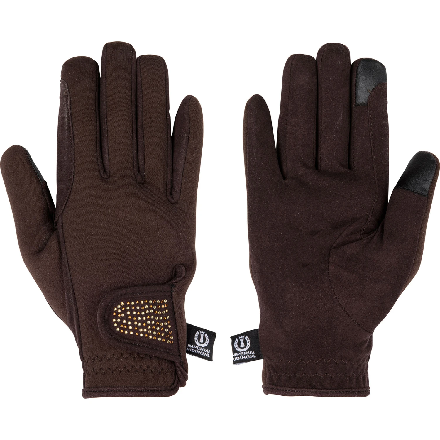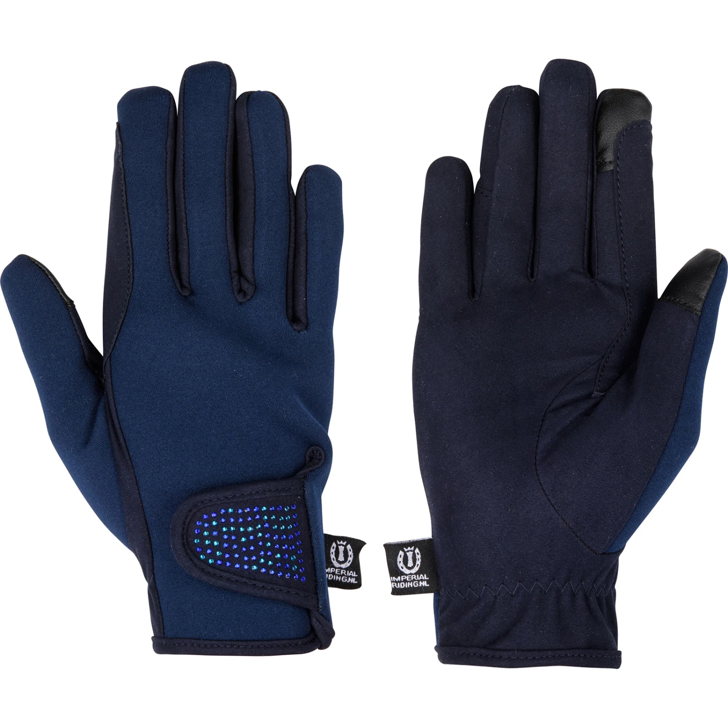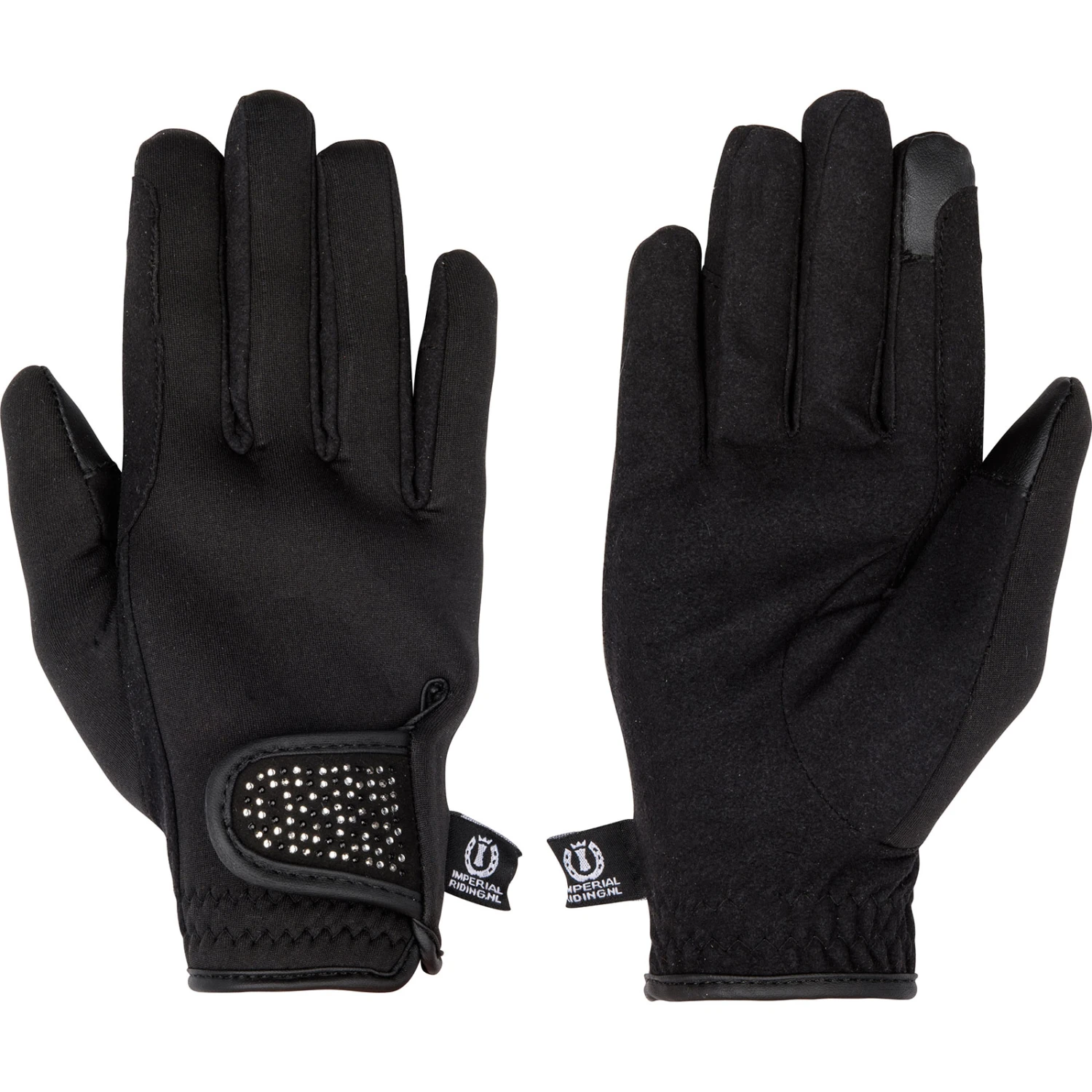 Diese Reithandschuhe von Imperial Riding sind schön warm und am Klettverschluss mit wunderschönen Strasssteinen verziert. Die Zeigefinger und Daumen verfügen über eine Touch Screen Funktion.