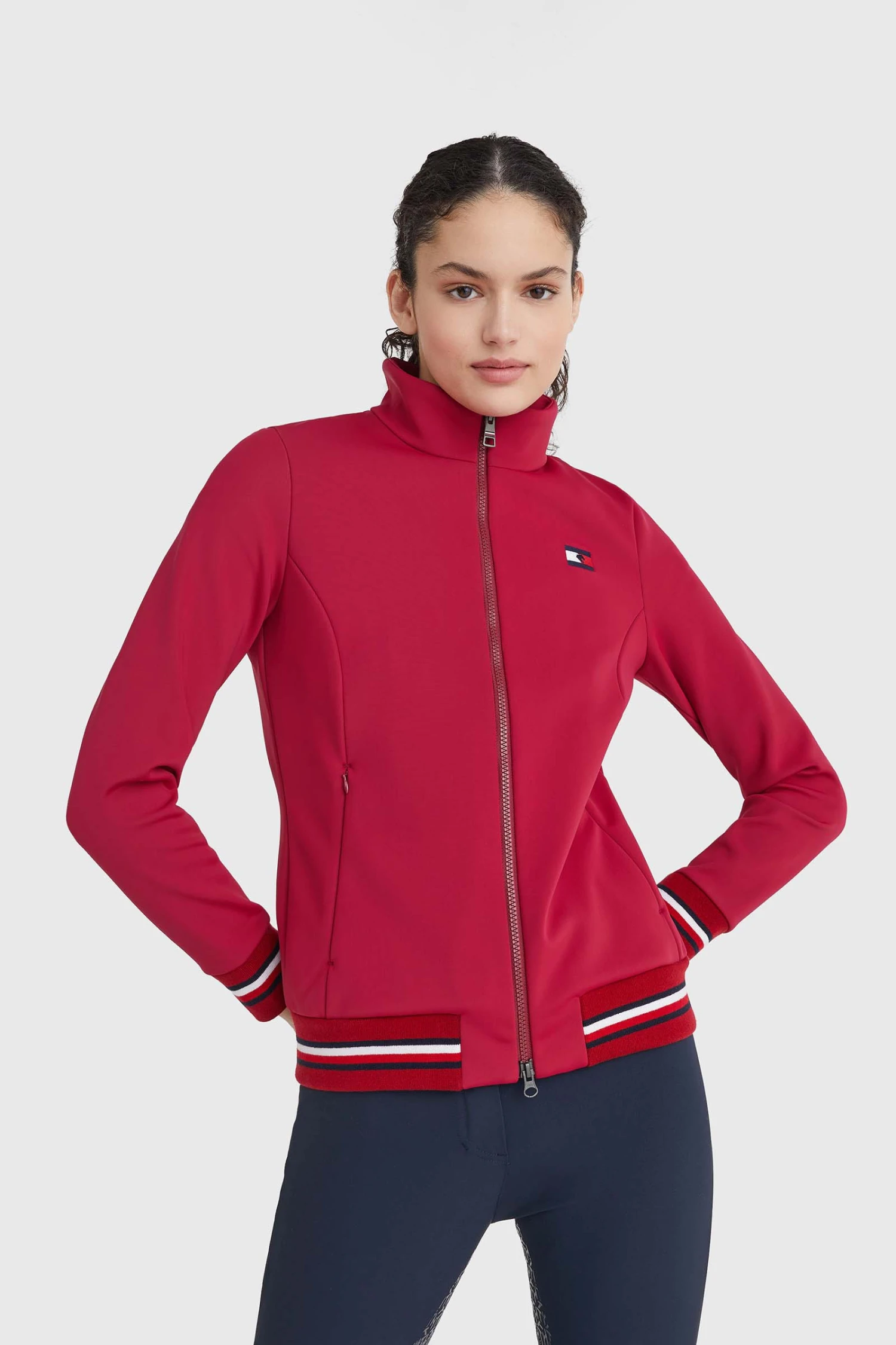 Softshelljacke von Tommy Hilfiger mit 2 Reißverschluss-Seitentaschen, elastisch anliegenden Ribbündchen mit dezentem Tommy Hilfiger Stripe am Saum und am Ärmelabschluss. Die Jacke besitzt eine Logo Stickerei auf der linken Brust und TH Global Streifenband Applikation hinten über dem Kragen.